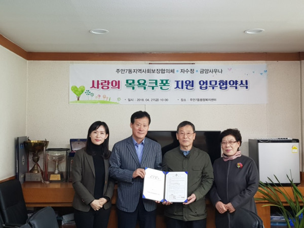 인천시 남구 주안7동, 저소득층 목욕쿠폰 지원 사업 업무협약 체결