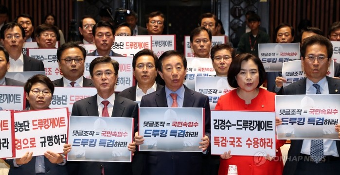 이어 “드루킹 일당이 댓글공작으로 여론을 조작했고 이와 관련해 대통령 최측근 김경수 의원이 관계를 맺었다는 점이 분명히 드러났다. 그럼에도 불구하고 부실수사와 회피수사로 일관하는 수사당국의 행태를 이해할 국민이 몇이나 될는지 의문”이라며 “심지어 드루킹 일당이 포털사이트에 대한 모니터링요원까지 배치해 정치권 뉴스를 점검하고, 기사를 선정하며, 댓글 수를 공유한 정황까지 언론에 의해 밝혀지고 있다. 이것이 댓글공작, 여론조작이 아니면 무엇이 공작이고 무엇이 조작이냐”라고 반문했다.