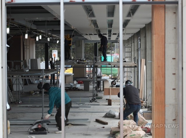 행정안전부와 소방청 등 관계부처들이 불법 주·정차와 비상구 폐쇄 및 물건 적치 등 이른바 '안전무시 7대 관행'을 뿌리 뽑기 위한 대책을 발표한 3일 오후 인천의 한 공사현장에서 근로자들이 안전모 없이 작업하고 있다.