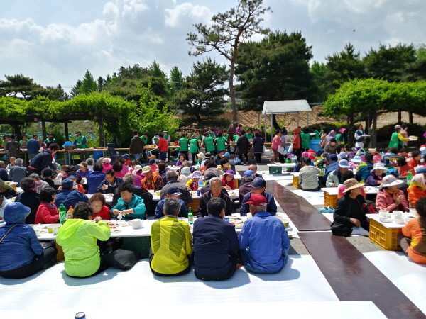 경기 이천시 대월면 새마을지도자협의회는 3일 면사무소 광장에서 가정의 달 5월을 맞아 ‘2018년 대월면 한마음 효도 큰 잔치’를 개최했다. 사진은 행사 참여자들이 식사를 하고 있는 모습.(사진제공=이천시청)