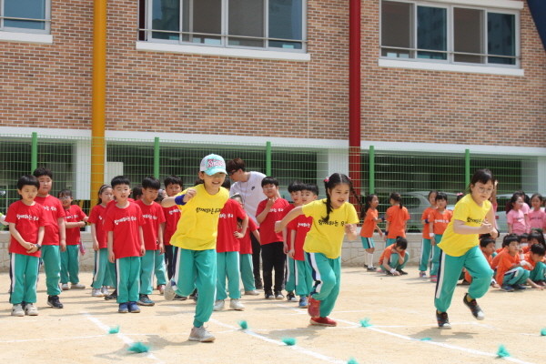 경북 구미시 원호초등학교는 최근 ‘2018 원호 스포츠페스티벌 및 금연선포식’을 열었다. 이날 행사에는 약 1000여명의 학생, 학부모, 내빈이 참석했다. 사진은 학생들이 달리기 시합을 하고 있는 모습.(사진제공= 원호초등학교)