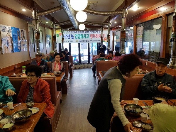 경기 구리시에서 가정의 달 5월을 맞아 노인들을 위한 민간단체의 식사 대접이 이어지고 있다. 사진은 3일 바르게살기운동 수택3동위원회에서 지역내 홀몸노인 25명을 초청해 준비한 갈비탕을 대접하는 모습.(사진제공=구리시청)