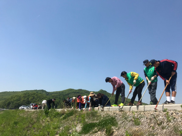 경기 용인시 처인구 모현읍에서는 최근 지역주민과 직원 등 40여명이 참여한 가운데 경안천 제방에 코스모스 꽃길을 조성하기 위해 코스모스 씨앗을 파종했다. 사진은 주민들이 코스모스 씨앗을 파종하고 있는 모습. (사진제공=용인시청)