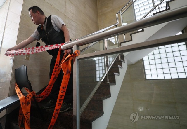 서울 강남의 한 피부과에서 프로포폴 주사를 맞고 시술받은 환자 20명이 집단으로 패혈증 증상을 보여 병원으로 옮겨졌다. 8일 오전 경찰과 보건당국이 이 피부과에 대해 현장 조사를 실시한 가운데 경찰과학수사대원이 건물 출입을 통제하고 있다.