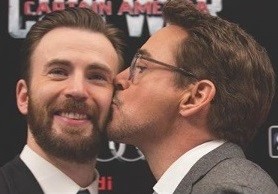 로버트 다우니 주니어의 뽀뽀 희생양(?)이 된 인물들은 바로 '어벤져스' 시리즈의 동료들인 캡틴 아메리카 역의 크리스 에반스, 페퍼 포츠 역의 기네스 팰트로, 헐크 역의 마크 러팔로다.