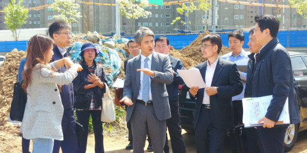 | ▲ 김인제 서울시의원이 구로구 항동지구 주택건설현장을 방문, 항동지구 및 인근 아파트 단지 지하를 관통하는 ‘서서울고속도로 조성공사’와 관련해 지역주민 및 서울주택도시공사(SH) 관계자와 이야기를 나누고 있다. (사진제공=서울시의회) | ||