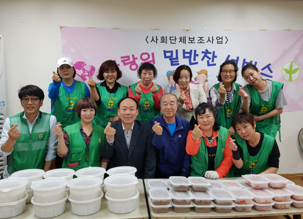 경기 동두천시 송내동 새마을부녀회는 9일 어려운 이웃과 따뜻한 온정을 함께 나누고자 지역내 저소득 홀몸노인과 장애인 16가구에 사랑의 밑반찬을 전달했다. 사진은 참여자들이 기념촬영을 하는 모습. (사진제공=동두천시청)