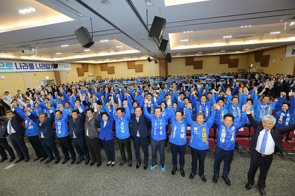 이날 필승전진대회에는 이용섭 시장후보, 임택, 서대석, 김병내, 문인, 김삼호 후보 등 5개 구청장 후보와 시·구의원 후보 및 지지자 1,000여 명이 운집한 가운데 성대하게 열렸다.