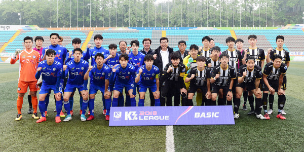 경기 여주세종축구단은 지난 12일 여주종합운동장에서 펼쳐진 K3리그 베이직 두번째 홈경기에서 서울유나이티드와 수중전을 펼친 가운데 연속 3골을 넣으며 3대1로 역전승을 거뒀다. 사진은 경기 종료 후 선수들이 기념촬영을 하는 모습. (사진제공=여주시청)