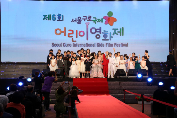 제6회 서울구로국제어린이영화제가 17일 신도림 테크노마트 그랜드볼룸에서 열린 영화축제(폐막식)를 끝으로 8일간의 여정을 마무리했다. 이날 가수 겸 배우 양동근과 SBS 아나운서 이병희가 사회를 맡아 경쟁부문 시상식을 진행했다. 사진은 폐막식에서 수상한 어린이 배우들이 기념촬영을 하는 모습.(사진제공=구로구청)