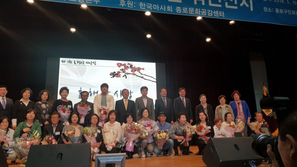 최근 종로구가 제46회 어버이날을 맞아 종로구민회관에서 700여명의 지역 노인들을 초청해, ‘제7회 효행상 시상 및 어르신 위안잔치’를 개최했다. 사진은 효행상을 수상한 주민들이 기념촬영을 하고 있는 모습.(사진제공=종로구청)