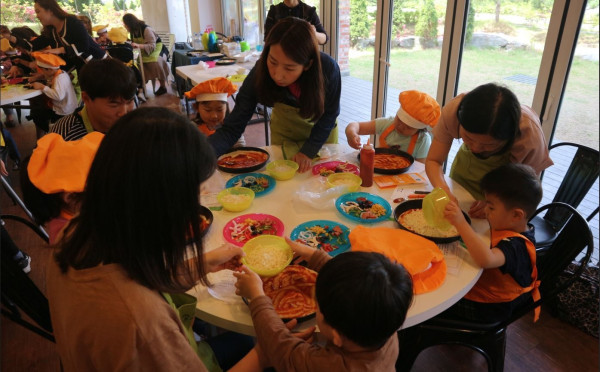 충남 아산시 어린이급식관리지원센터는 최근 총 4회에 걸쳐 해바라기어린이집 등 7곳의 등록 급식소 어린이와 학부모를 대상으로 우리가족 편식예방 요리교실 ‘나는야 요리왕’ 피자 만들기 체험 프로그램을 진행했다. 사진은 참여자들이 피자를 만들고 있는 모습.(사진제공=아산시청)
