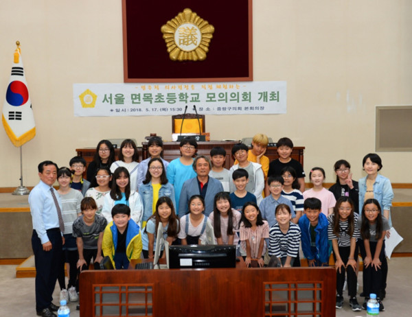 [시민일보=여영준 기자] 서울 중랑구의회는 17일 의회 본회의장에서 지역내 서울면목초등학교 학생 30여명을 대상으로 모의의회를 개최했다.