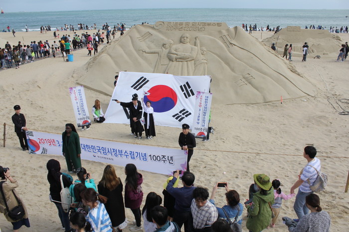 또한, 모래축제 이틀째인 20일에는 애국선열을 형상화한 모래조각 앞에서 2019년 3·1운동 및 임시정부수립 100주년을 시민들에게 알리기 위한 독립투사 영웅들의 퍼포먼스로 진행했다.