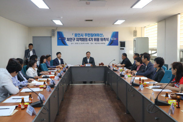 경기 용인시 처인구는 23일 '제4기 주민참여예산 처인구 지역회의 위원' 25명을 위촉했다. 사진은 위촉식 전 위원들에게 앞으로의 활동방향에 대해 설명하고 있는 모습. (사진제공=용인시청)