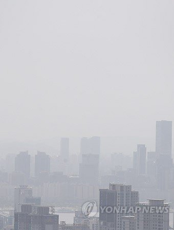 중국발 황사가 39일 만에 서울을 덮친 24일 오후 남산에서 바라본 서울 하늘이 뿌옇다.