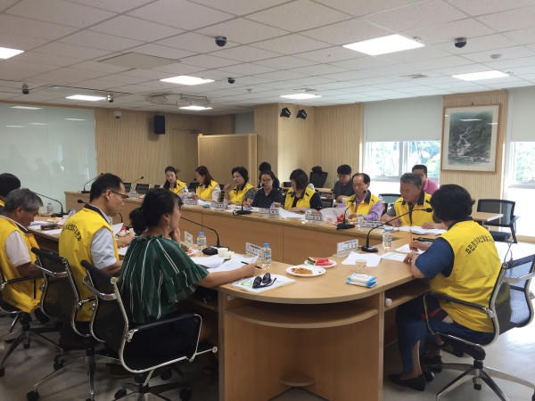 경기 수원시 팔달구는 28일 구청 상황실에서 주민참여예산 지역회의 사전적격성 심사위원 11명이 모여 2019년 예산 편성을 위한 주민참여예산 구 소관 제안사업 43건에 대한 사전적격성 심사를 실시했다. 사진은 위원들이 심사를 진행하는 모습. (사진제공=팔달구청)
