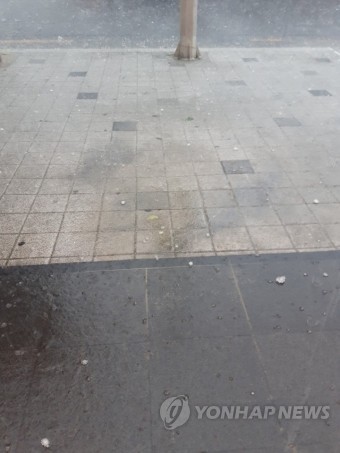 30일 오후 대구시 북구에 소나기와 함께 때아닌 우박이 떨어지고 있다.