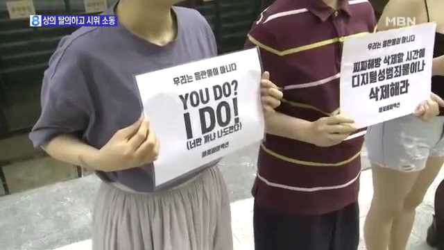 불꽃페미액션 회원으로 알려진 여성들은 남성과 여성의 표현 수위에 대한 차별을 항의했다. 또한 자신들의 상의를 벗으며 자신들의 메시지를 전달했다.