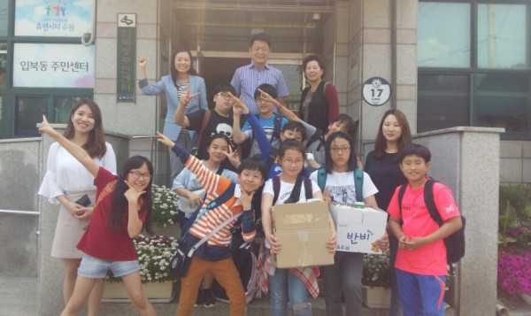 경기 수원시 권선구 입북동은 최근 입북초등학교 학생들이 모은 우유팩을 전달받았다. 수거한 우유팩은 수원시 자원순환센터로 보내져 재활용된다. 사진은 학생들과 관계자들이 기념촬영을 하고 있는 모습. (사진제공=권선구청)