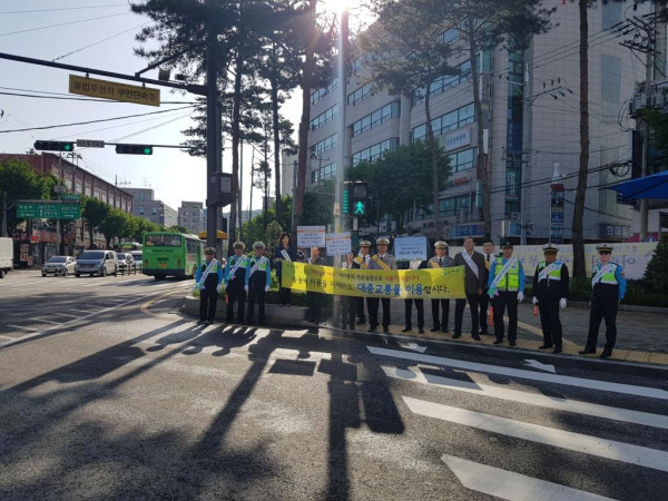 최근 은평구가 주민들의 대중교통 이용 활성화를 위해 구청 직원과 서부·은평경찰서, 녹색어머니연합회 등이 참여한 가운데 캠페인 활동을 펼쳤다. 사진은 참가자들이 대중교통을 이용하자는 내용의 현수막을 들고 캠페인을 펼치고 있는 모습. (사진제공=은평구청)