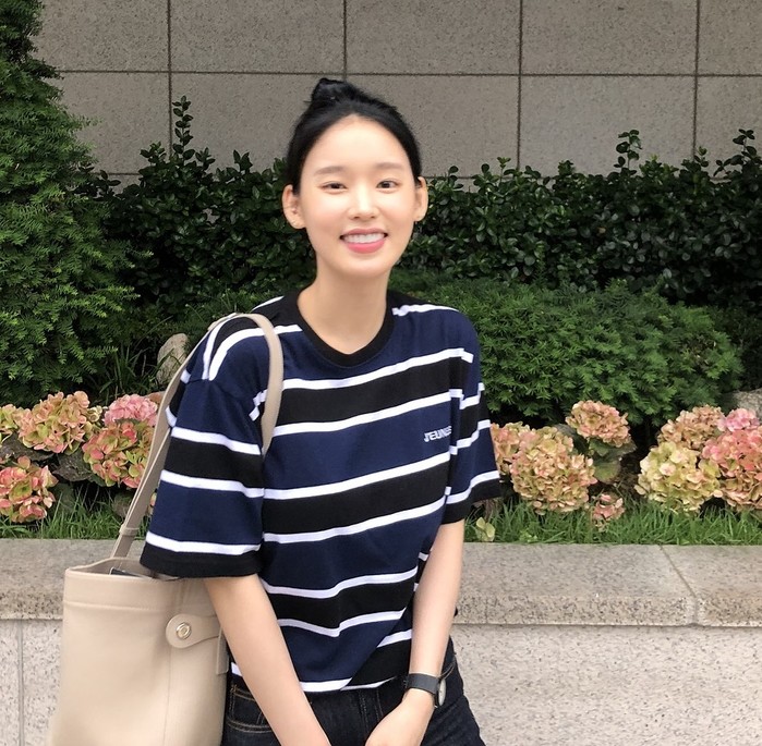 편한 반팔 티셔츠를 입었음에도 마치 화보처럼 훌륭한 미모를 뽐냈다.
