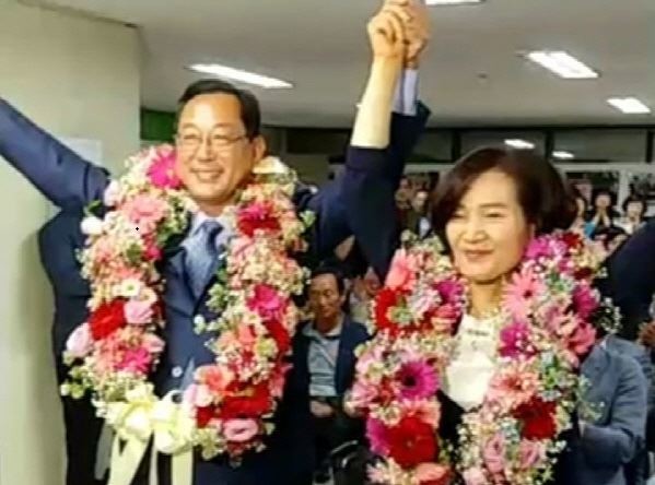 | ▲ 제 44대 해남군수에 당선된 명현관 당선자와 부인 임경자 여사(사진) | ||