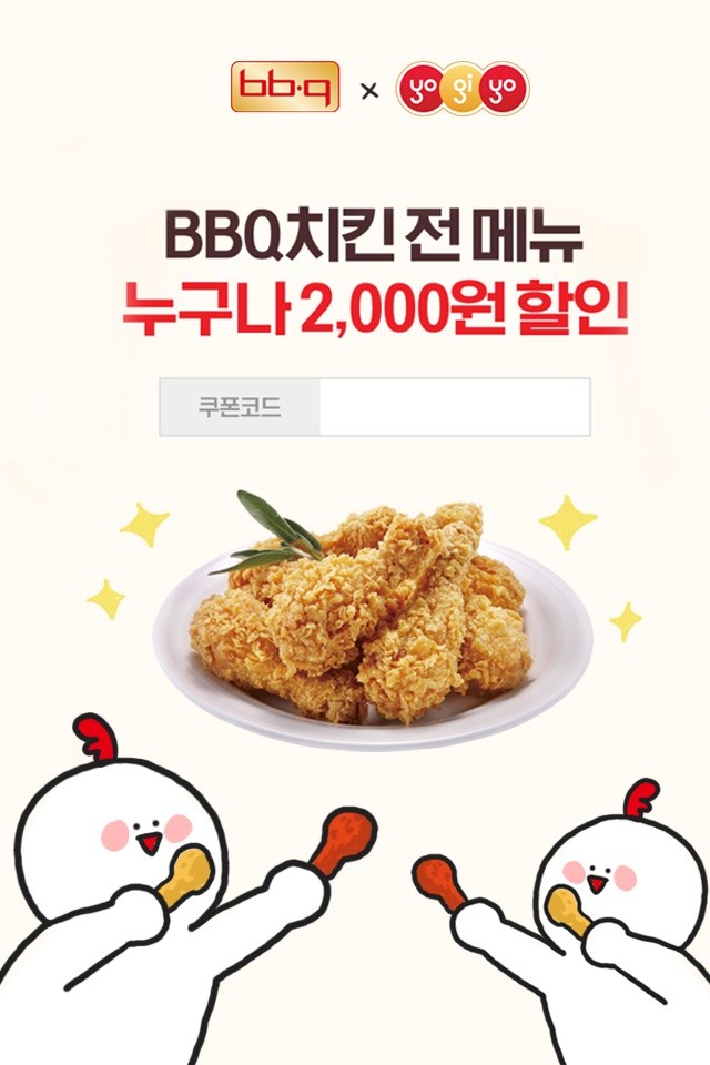 BBQ에 따르면 요기요 할인 혜택을 받고자 하는 고객들은 BBQ 홈페이지에 접속한 후 쿠폰코드를 확인해 요기요 앱을 통해 결제 시 2000원 할인(변동가능)을 적용 받을 수 있다.