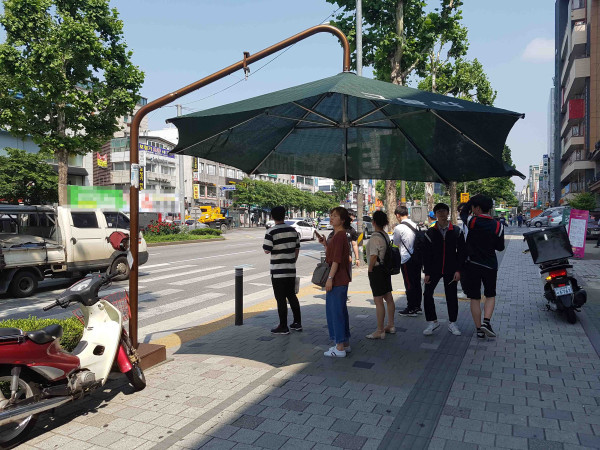 구는 폭염안전망 구축 사업의 일환으로 신호를 기다리거나 버스를 기다리는 주민들이 햇빛을 피할 수 있도록 횡단보도 주변과 버스정류소에 ‘무더위 그늘막’을 설치·운영 중이다.