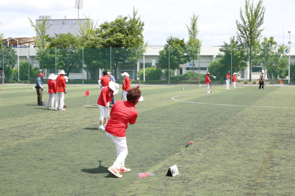 경기 연천군은 대한노인회 연천군지회 주최로 연천군 공설운동장내 인조잔디축구장에서 내·외빈 100여명이 참석한 가운데 ‘제1회 연천군의장배 그라운드 골프대회’를 개최했다. 사진은 대회에 참여한 노인들이 스윙을 하는 모습. (사진제공=연천군청)
