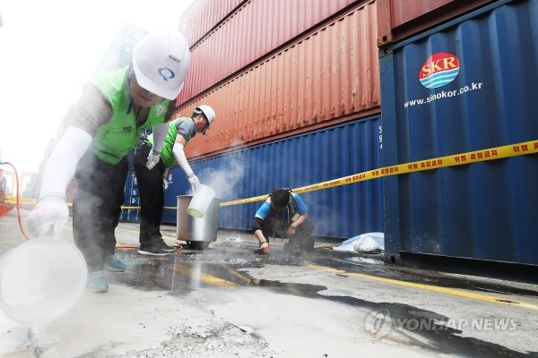 19일 오후 경기도 평택시 평택항 컨테이너터미널 야적장에서 농림축산검역본부 관계자들이 붉은불개미 방제작업을 하고 있다.
