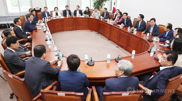 19일 오전 국회 자유한국당 대회의실에서 당 소속 초선 의원들이 당 재건 및 개혁 등을 논의하고자 모여 있다.