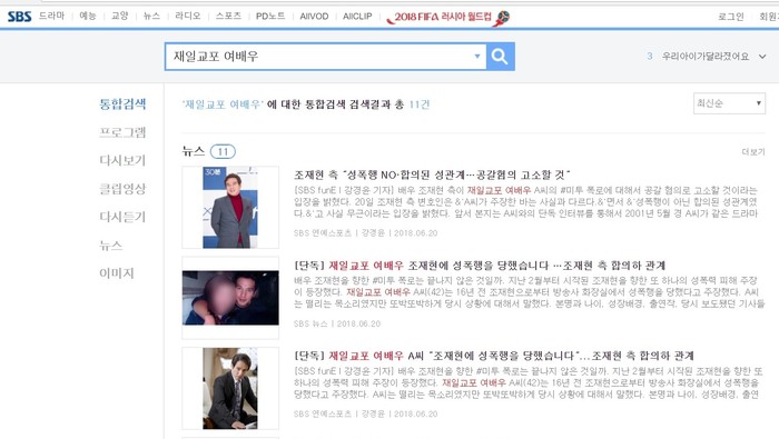 20일 SBS 홈페이지에서는 재일교포 여배우를 성폭행한 논란을 빚고 있는 중견배우의 이름이 검색이 되지 않고 있다. 또한 이 배우에 관련된 자료를 찾을 수 없다.