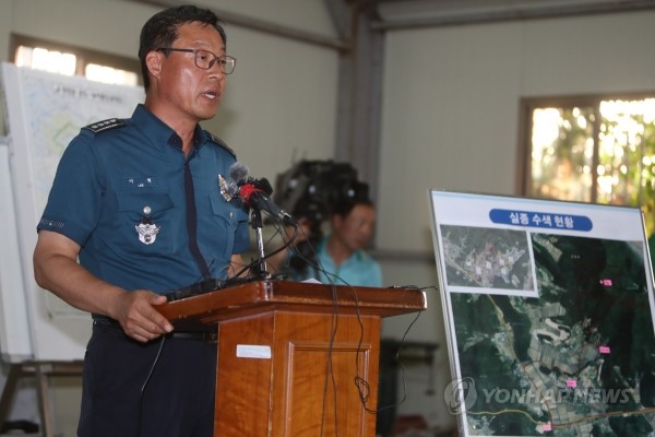 | ▲ 24일 전남 강진군 도암면 한 야산에서 8일 전 실종된 여고생으로 추정되는 시신이 발견돼 이혁 전남 강진경찰서장이 현장본부에서 수사상황을 브리핑하고 있다.(사진제공=연합뉴스) | ||