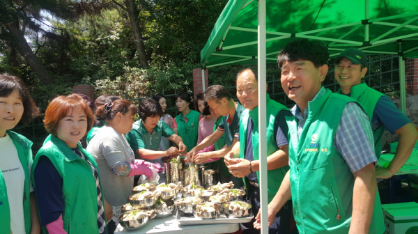 경기 하남시 초이동 새마을협의회 남녀 지도자 20여명이 참여한 가운데 지역내 홀몸노인 등 130여명을 대상으로 '삼계탕 나눔 행사'가 열렸다. 사진은 홀몸노인에게 대접할 삼계탕을 마련하는 새마을협의회 회원들의 모습. (사진제공=하남시청)