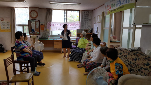 경기 동두천시 송내동 행정복지센터 맞춤형복지팀은 최근 오전 부영9단지 경로당에서 ‘찾아가는 복지상담의 날’을 운영했다. 사진은 센터 관계자가 노인들과 이야기를 나누고 있는 모습. (사진제공=동두천시청)