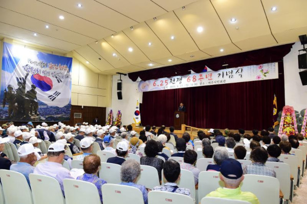 경기 여주시는 ‘6.25전쟁 68주년 추념일’을 맞이해 지난 25일 여주시민회관에서 호국영령의 넋을 기리고, 6.25 참전용사의 위국헌신의 노고를 위로하는 ‘6.25전쟁 68주년 기념행사’를 개최했다. 사진은 원경희 시장이 축사를 하는 모습. (사진제공=여주시청)