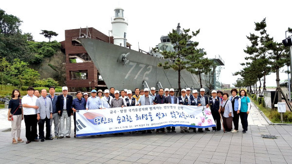 경기 남양주시 금곡양정행정복지센터는 한국자유총연맹 남양주시지회와 함께 28일 금곡·양정동 국가유공자들과 평택시 소재 해군 제2함대사령부를 방문, 안보현장을 견학했다. 사진은 천안함 앞에서 기념촬영 중인 관계자들의 모습.(사진제공=남양주시청)