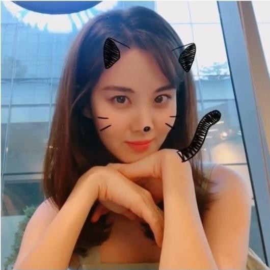 입술을 삐쭉 내밀어 뽀뽀하는 척 하다가 부끄러워 수줍게 웃는 모습이 인상적이다. 또한 서현은 어플을 활용해서 자신의 얼굴에 고양이 그래픽을 삽입해 귀여움을 더했다.