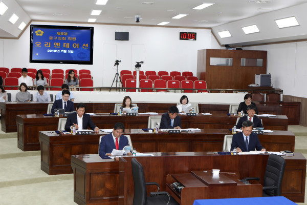 | ▲ '제8대 의원 당선인 오리엔테이션'에 참석한 중구의원들이 의정활동 전반에 관한 사항과 원구성 일정등에 대한 의회 관계자의 설명을 경청하고 있다. (사진제공=중구의회) | ||
