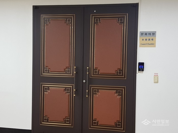 | ▲ (한국당 의원들의 집단 농성으로 굳게 잠겨진 안양시의회 본회의장 정문) | ||
