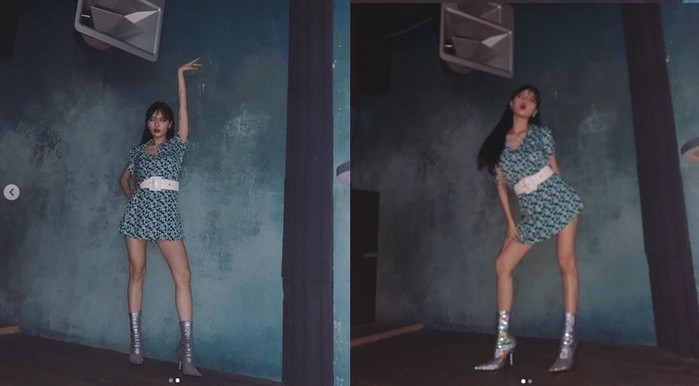 현아는 자신의 SNS에 여러 장의 사진을 게재하며 근황을 알렸다. 공개된 사진 속에는 푸른색 플라워 패턴 프릴 원피스를 입고 포즈를 취하고 있는 현아의 모습이 담겨 있다.