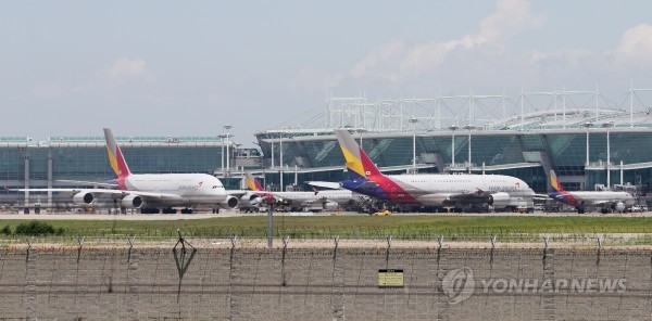 | ▲ 4일 인천국제공항에서 출발을 기다리는 아시아나 항공기들.(사진제공=연합뉴스) | ||