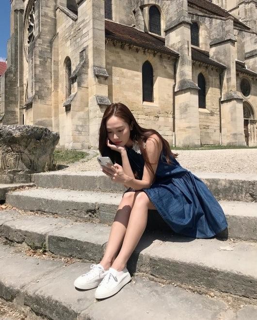 휴대폰을 바라보고 있는 제시카의 모습에서 청순미가 물씬 풍겨온다. 프랑스 오베르 쉬르 와즈에서 여유로운 일상을 만끽하고 있는 제시카의 근황이 보는 이들의 시선을 사로잡는다.