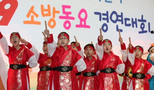 5일 서울 동대문구 서울시립대에서 열린 제19회 서울시 119소방동요 경연대회에서 어린이들이 열띤 경연을 펼치고 있다.