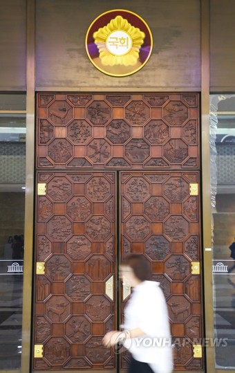 국회가 20대 국회 후반기 원 구성 협상에 진전이 없고 ‘쌈짓돈’, ‘눈먼돈’ 비판이 이는 국회 특수활동비(특활비) 논란까지 이어지며 난항을 겪고 있다. 5일 닫혀있는 국회의사당 본회의장 문 앞을 관계자가 지나고 있다.