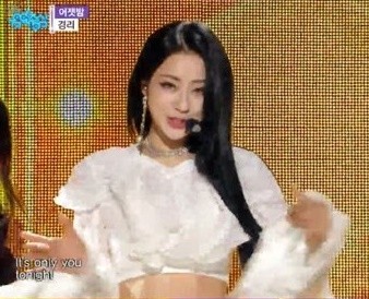 이날 경리는 크롭티와 블랙팬츠를 입고 무대에 올랐다. 특히 무대에서는 하이힐을 신은 남자 댄서들이 함께 해 파격적이면서도 관능미를 더했다.