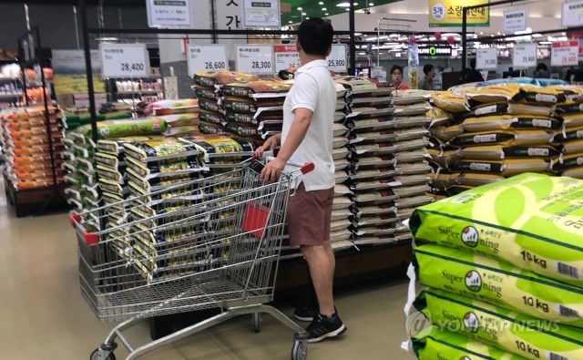 8일 통계청에 따르면 올해 상반기 곡물값은 지난해 같은 기간보다 19.8% 올랐다. 이는 관련 통계가 집계되기 시작한 1985년 이후 최대 상승 폭이다. 2011∼2013년 상반기 6∼10%대 상승률을 유지하던 곡물값은 2014년 마이너스로 전환한 이후 4년 연속 하락세를 이어왔다. 사진은 이날 서울 하나로마트 양재점 정미 코너의 모습.