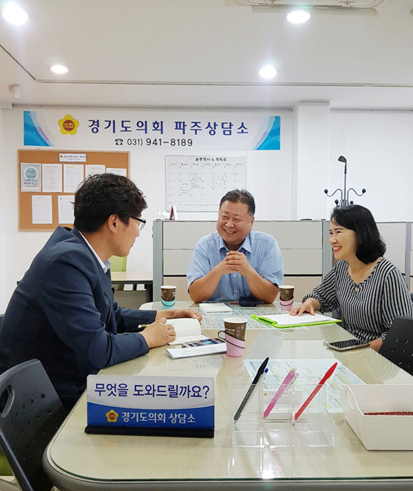 한편 도의회 파주지역상담소는 파주시민회관 2층에 위치하고 있으며 지역상담소를 기반으로 도의원들은 주민의 입법, 정책 관련 건의사항을 수렴하고 지역발전을 위한 주민의 참신한 아이디어를 도정에 반영하며, 생활불편 등 각종 민원사항 해결에 힘을 쏟고 있다.