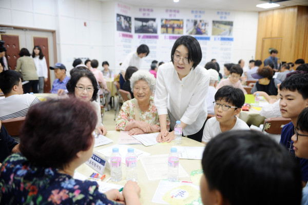 서울 광진구 구의3동은 지난 7일 오전 10시 김선갑 구청장, 마을계획단과 주민 150여명이 참석한 가운데 ‘제1회 구의3동 마을총회’를 열었다. 사진은 총회에 참석한 주민들이 10가지 마을의제 가운데 우선 실천한 마을의제를 선정하기 위해 원탁토의를 하는 모습. (사진제공=광진구청)